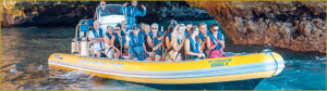 - Aproveite a melhor das Experiências: Grutas de Benagil e Golfinhos e desfrute do poder das manobras da nossa belíssima embarcação, ideal para famílias e grupos grandes.